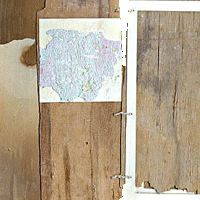 The History Book #2, 2000, linoleum, plaster, glass, wood, 30 x 23 cm